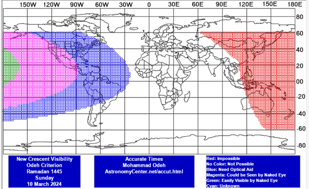 Crescent Visibility Report for Ramadan 1445 (29th of Shaban, Sunday 10th March 2024)