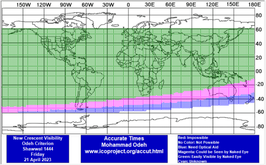 Crescent Visibility Report for Shawwal 1444 (Thursday 20th April 2023) (29th Ramadan 1444) Based on settings*