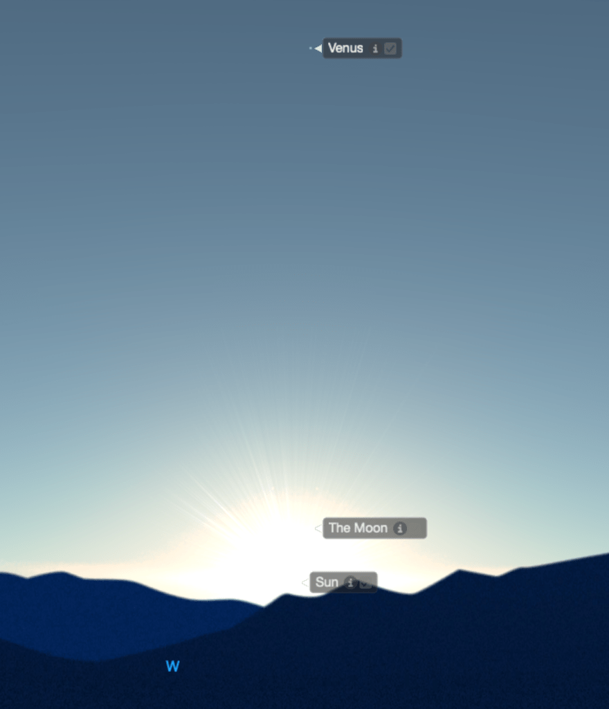 The Sky looking West on 20th April 2023. Planet Venus inline above