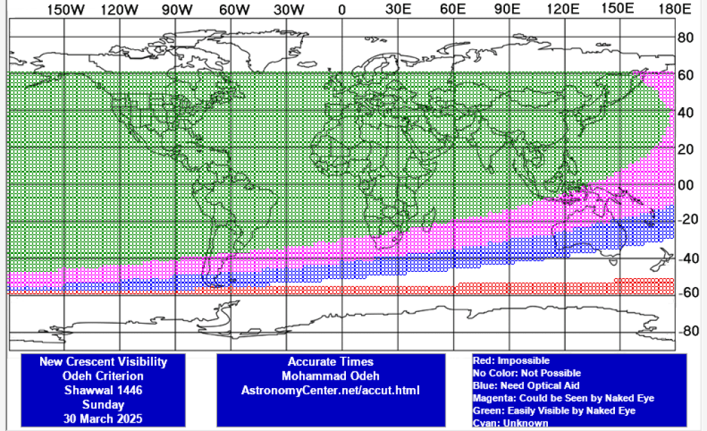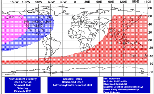 Crescent Visibility Report for Ramadan 1446 (29th of Shaban, Friday 28th February 2025)