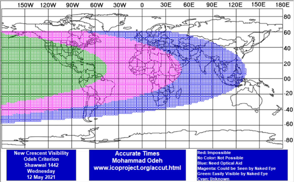 Crescent Visibility Report for Shawwal 1443 (Sunday 1st May 2022) (29th Ramadan 1443) Based on settings*